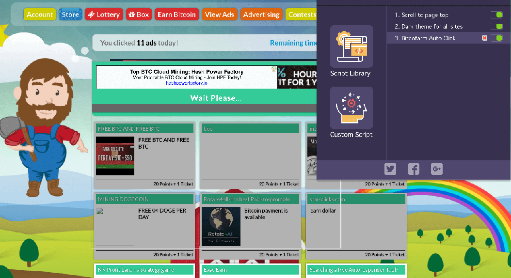 Script which automatically clicks ads on Bitcofarm website. Enjoy!